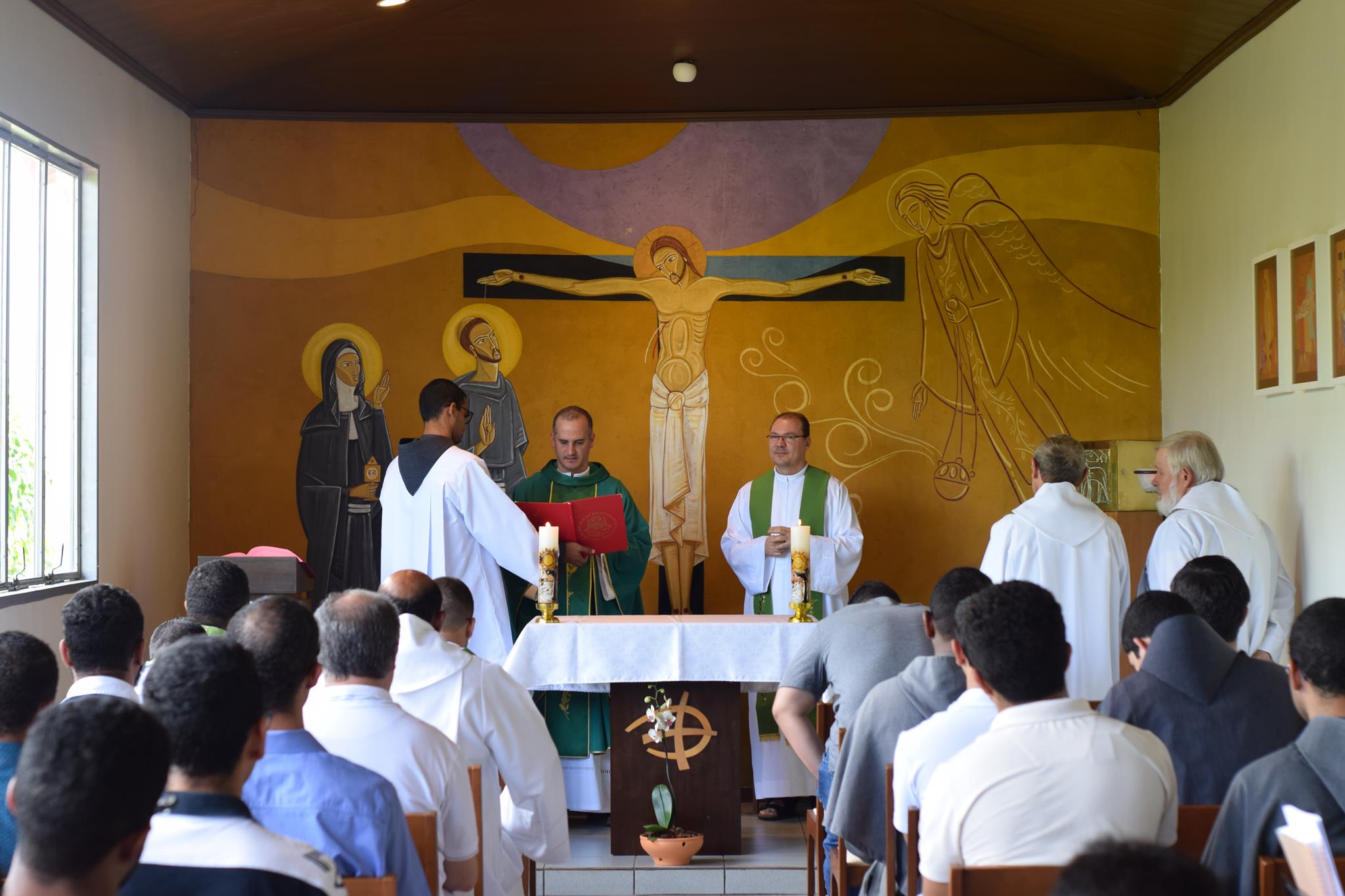 O Frei Marcelo Veronez, em sua homilia, comentou a importância que a fraternidade tem na vida religiosa consagrada. A Eucaristia foi presidida pelo aniversariante que agradeceu a todos pela presença não na celebração, mas também em sua vida e caminhada na Igreja. Logo após, todos e todas se reuniram no refeitório do ISB e partilharam de um almoço fraterno.