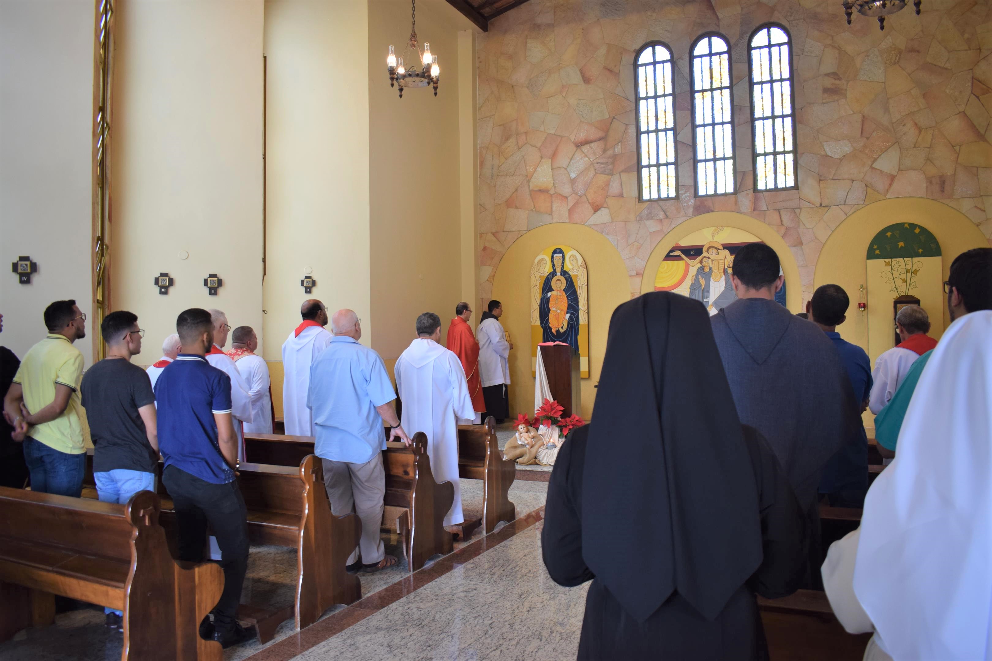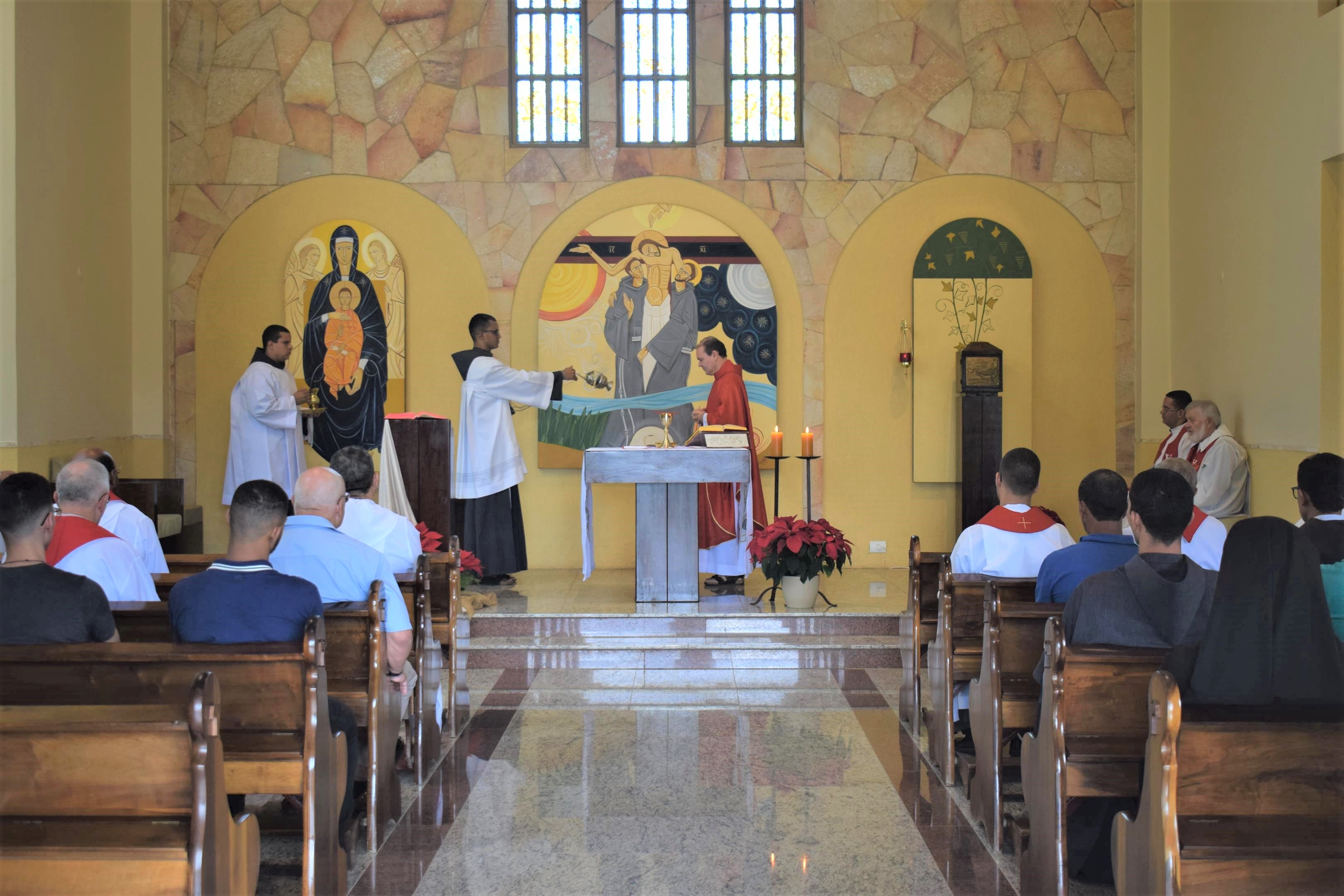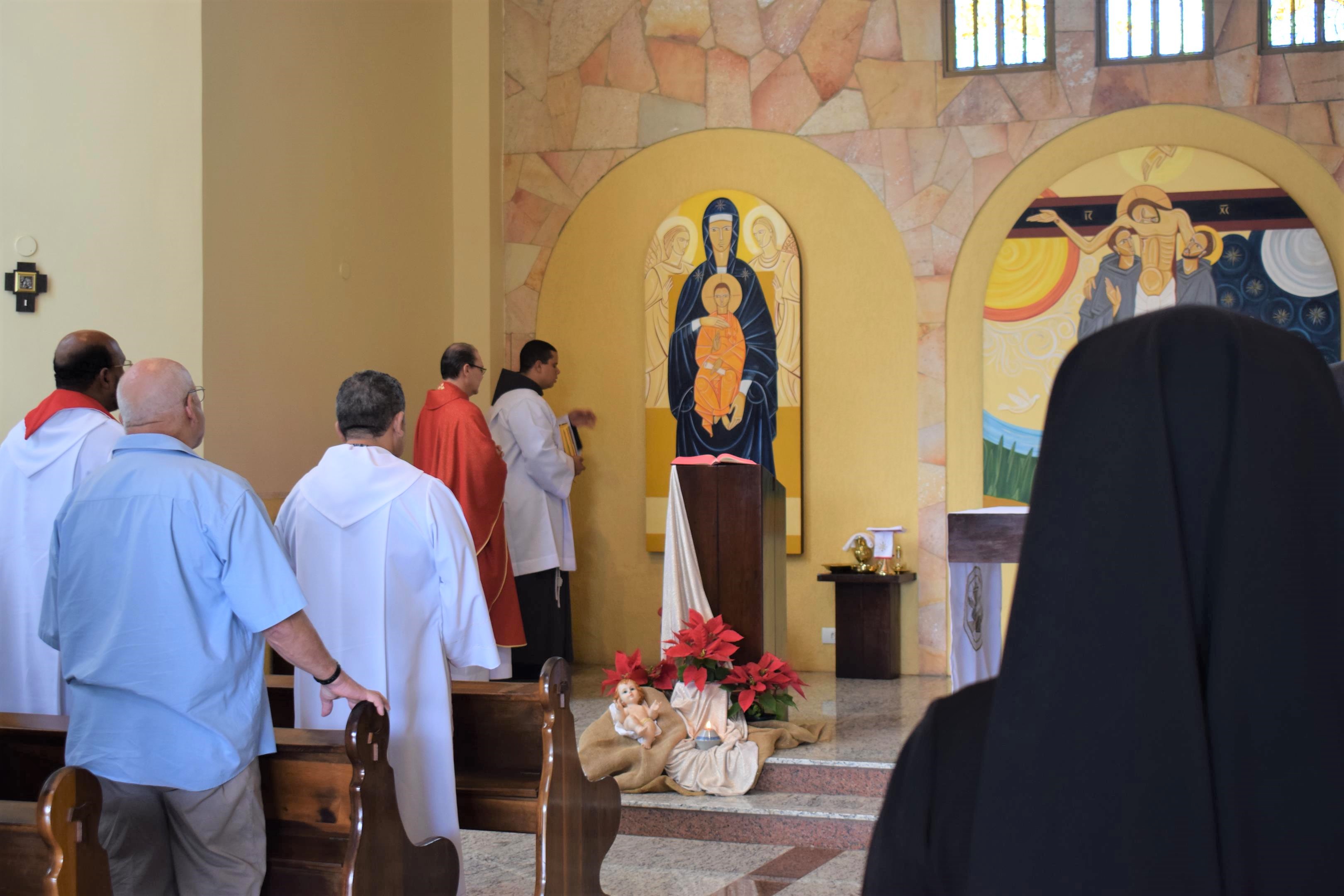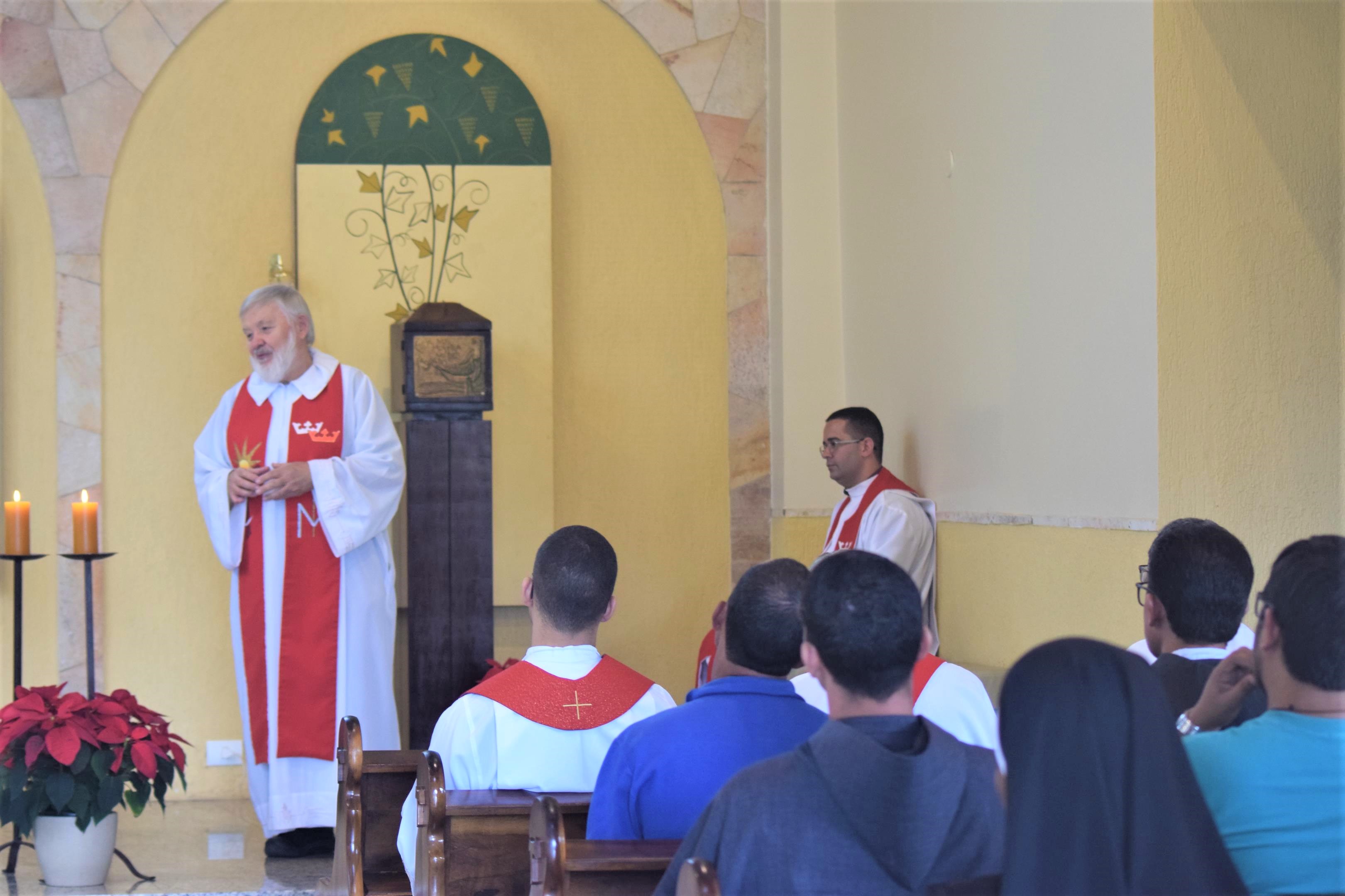 Estiveram presentes alguns frades, pré-noviços e freiras que residem nas regiões próximas à Capital Federal. Durante a homilia, o provincial, relembrando a Primeira Leitura (At 6,8-10; 7,54-59) e o Evangelho (Mt 10,17-22) do dia, elucidou sobre o martírio, “seremos perseguidos por sermos cristãos e o martírio atual trata-se de nos reafirmarmos quanto ao que cremos”, explicou.