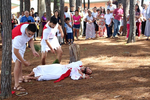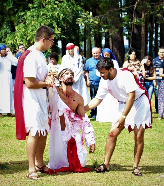 A sexta-feira santa (14) foi dia de penitência e jejum, um dia marcado por momentos emocionantes com encenações da Paixão do Senhor. No Jardim da Imaculada, na Cidade Ocidental - GO, os postulantes encenaram a Via Sacra. À tarde, às 15h, aconteceu a Celebração da Paixão de Cristo, e depois a procissão do Senhor Morto nos santuários e paróquias.