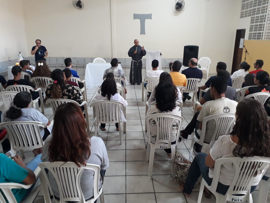 Os frades Mayko Ataliba (OFMConv.) e Alex Rosa (OFMConv.), do Serviço de Animação Vocacional (SAV) de nossa província, participaram no último domingo, 21, da Jornada Vocacional. Realizada na Paróquia Nossa Senhora Aparecida do Cristo, em João Pessoa, o evento teve como tema “Sede Santos: uma conversa sobre a Santificação Cristã à luz de São Francisco”.