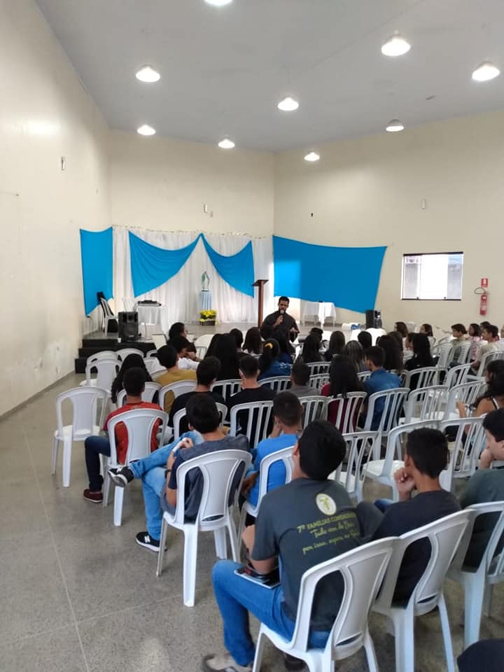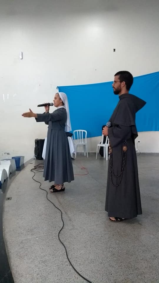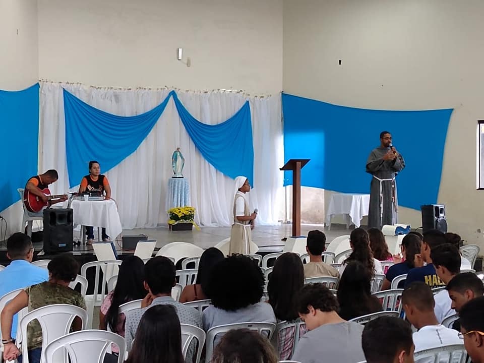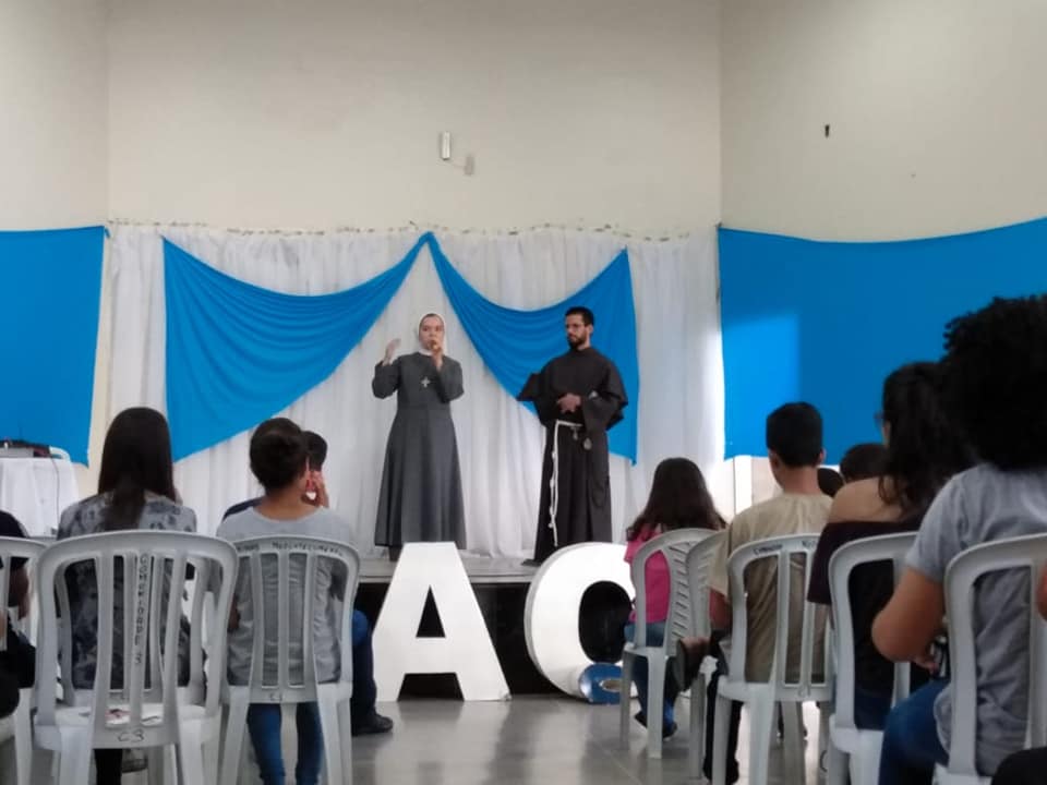 No último dia 31 de março, o Serviço de Animação Vocacional (SAV) de nossa Província esteve presente no evento “Eis-me Aqui! ”, na Paróquia São Gabriel Arcanjo no Recanto das Emas – DF. O encontro ocorreu no período da tarde com a presença de cerca de 100 jovens da comunidade, além dos nossos frades estiveram presentes alguns seminaristas diocesanos e religiosas de diversas congregações. O tema do encontro foi vocação. Durante a tarde os jovens puderam conhecer melhor sobre as vocações à santidade, ao amor, matrimonial, laical, religiosa e sacerdotal. Além das exposições realizadas, os jovens tiveram a oportunidade de tirarem suas dúvidas e o encontro foi concluído com a Santa Missa. Rezemos para que estes jovens estejam atentos ao chamado de Deus em suas vidas e possam responder com amor e confiança ao Senhor da Messe “Eis-me aqui! ”.