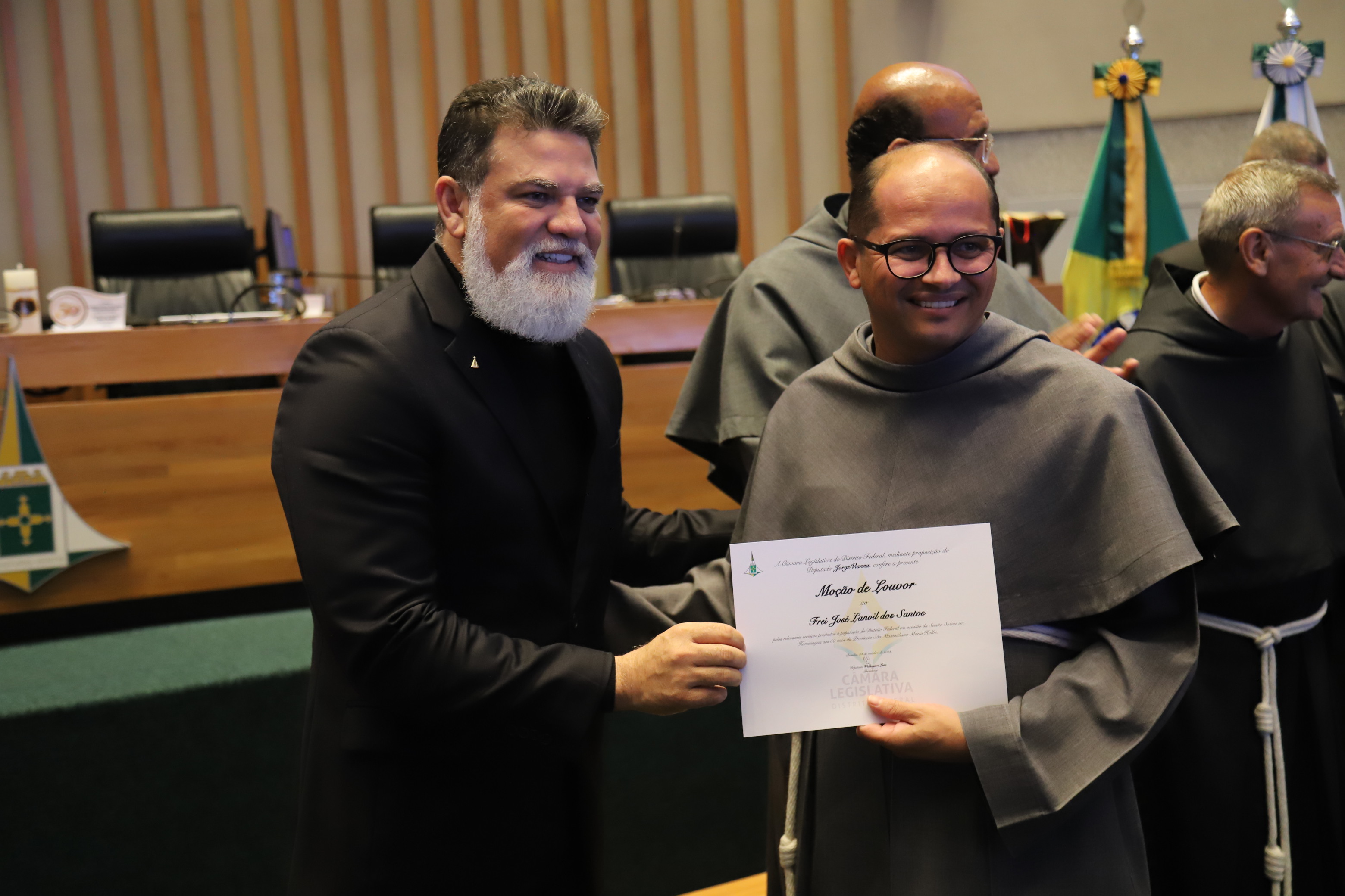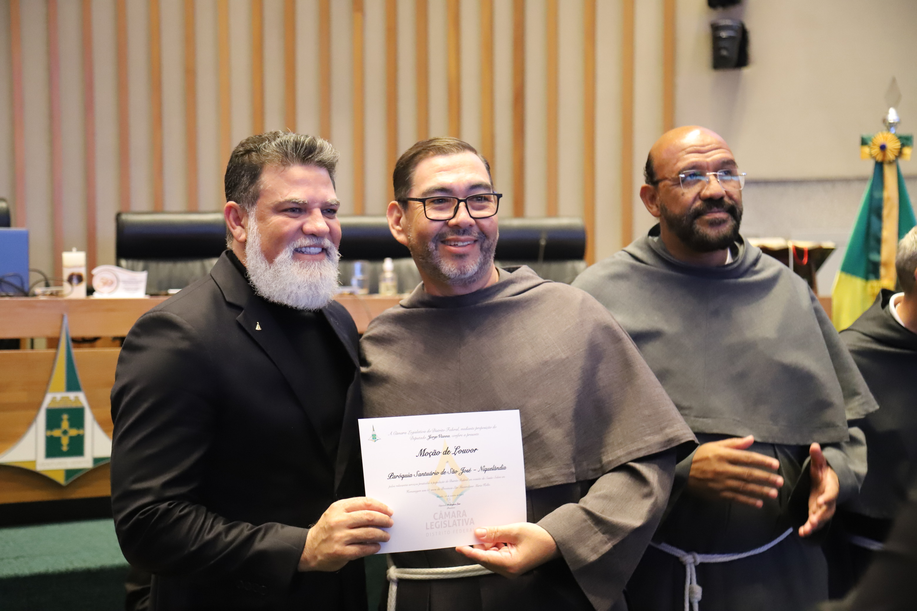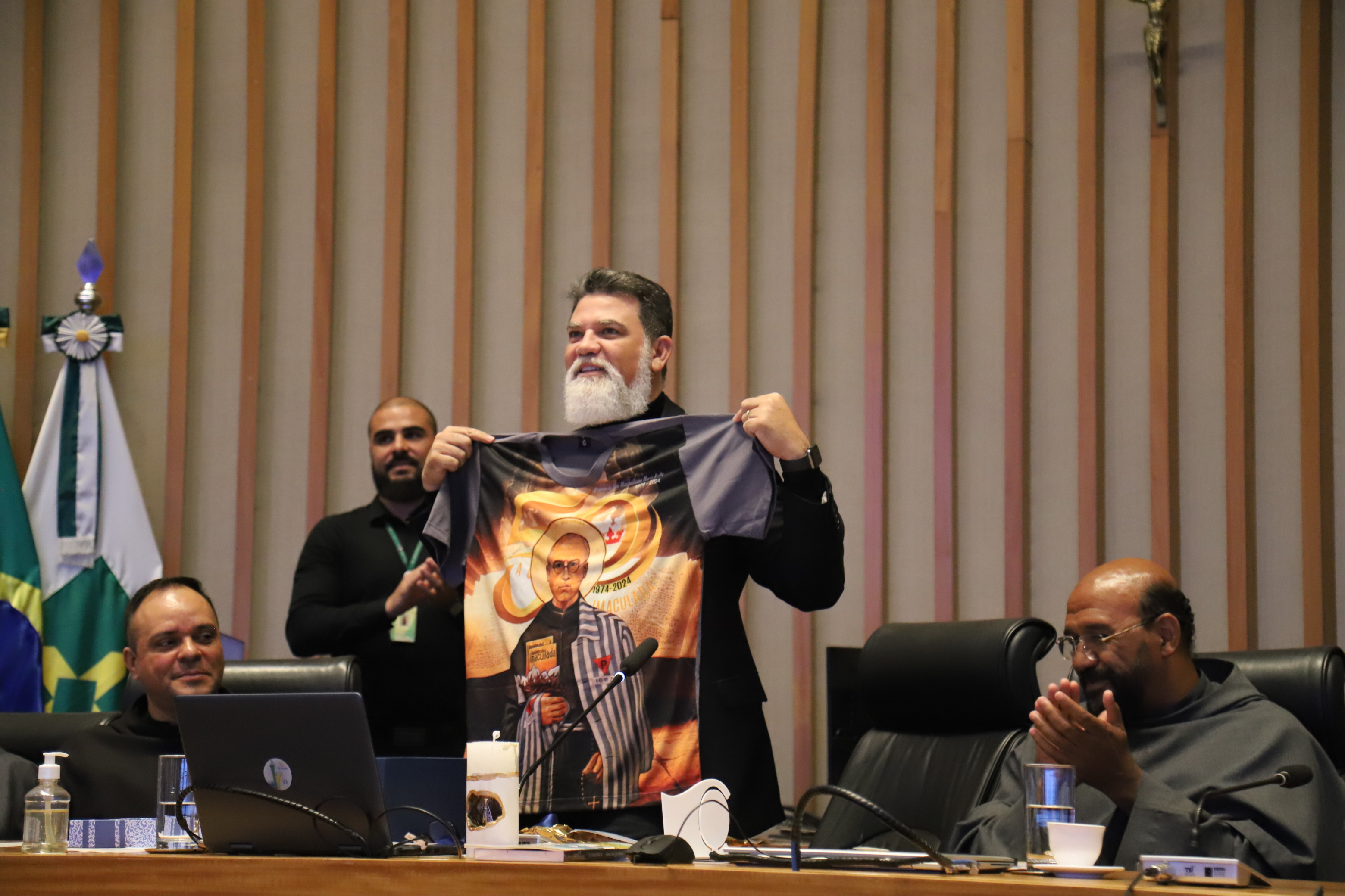 O deputado Jorge Vianna (PSD), autor da homenagem, destacou que “há 50 anos os franciscanos presentearam o Distrito Federal com uma obra de amor, a Província São Maximiliano Kolbe”. Fundada por frades poloneses, a província atua sob o legado de São Maximiliano Kolbe (1894–1941), canonizado em 1982 por João Paulo II e reconhecido por seu heroísmo ao oferecer a vida em troca de outro prisioneiro no campo de concentração de Auschwitz.