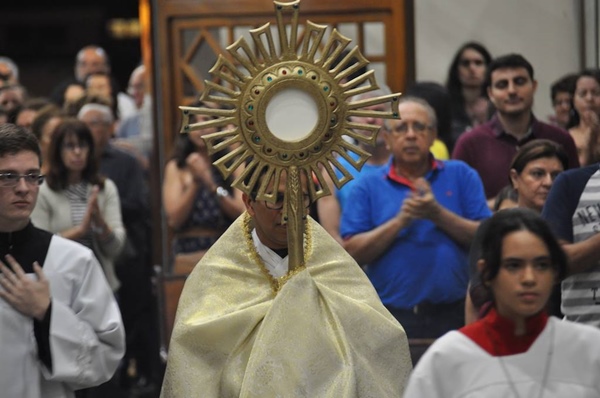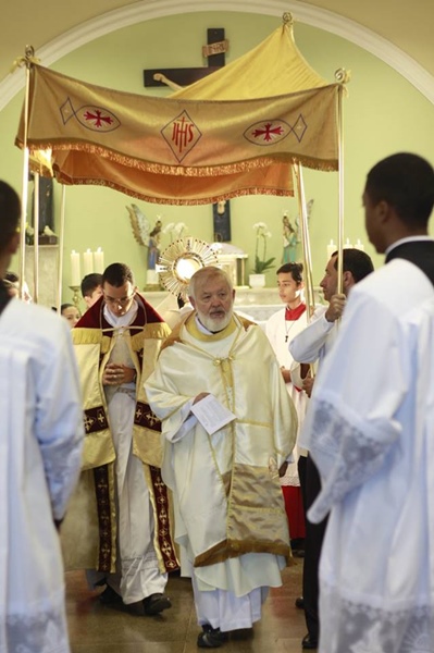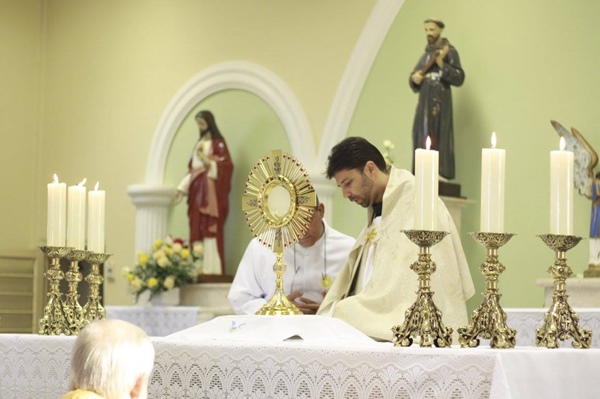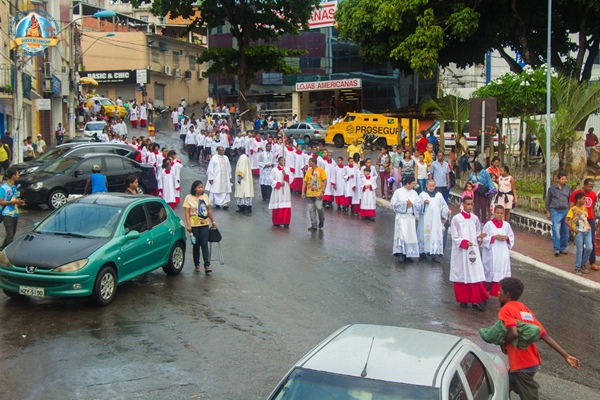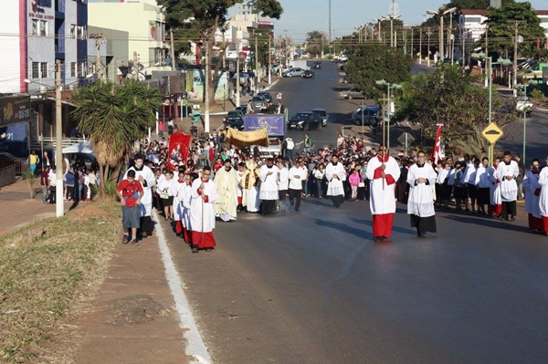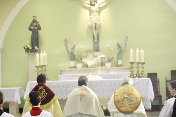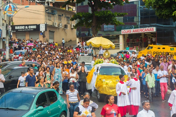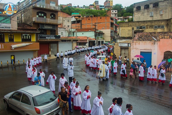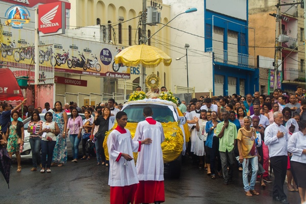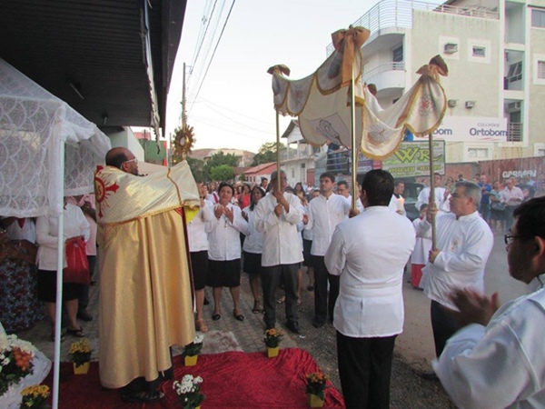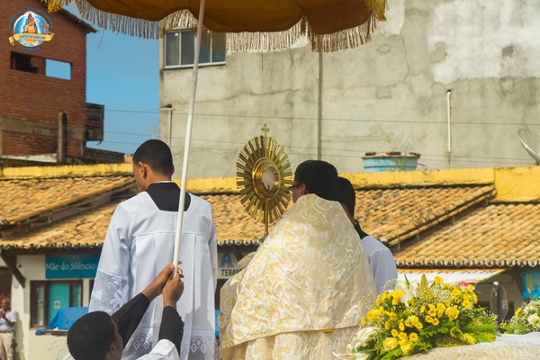 Depois da celebração eucarística, os fiéis seguiram em procissão pelas ruas da cidade, encerrando em frente ao Santuário, onde o Santíssimo foi recebido pela comunidade com palmas e muita reverência. No altar, Frei Jorge Luiz deu a benção final aos presentes.