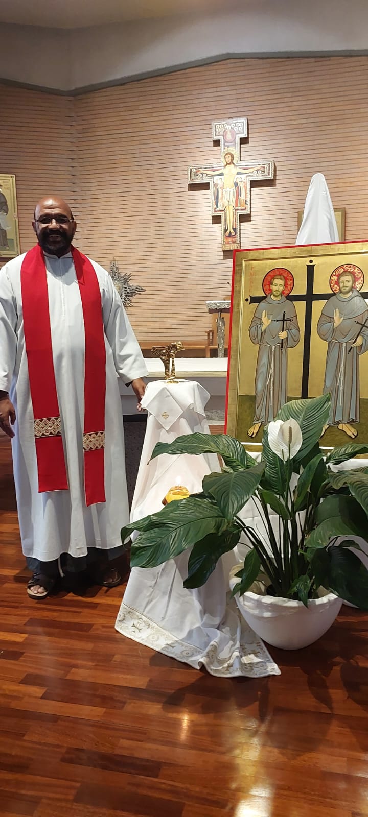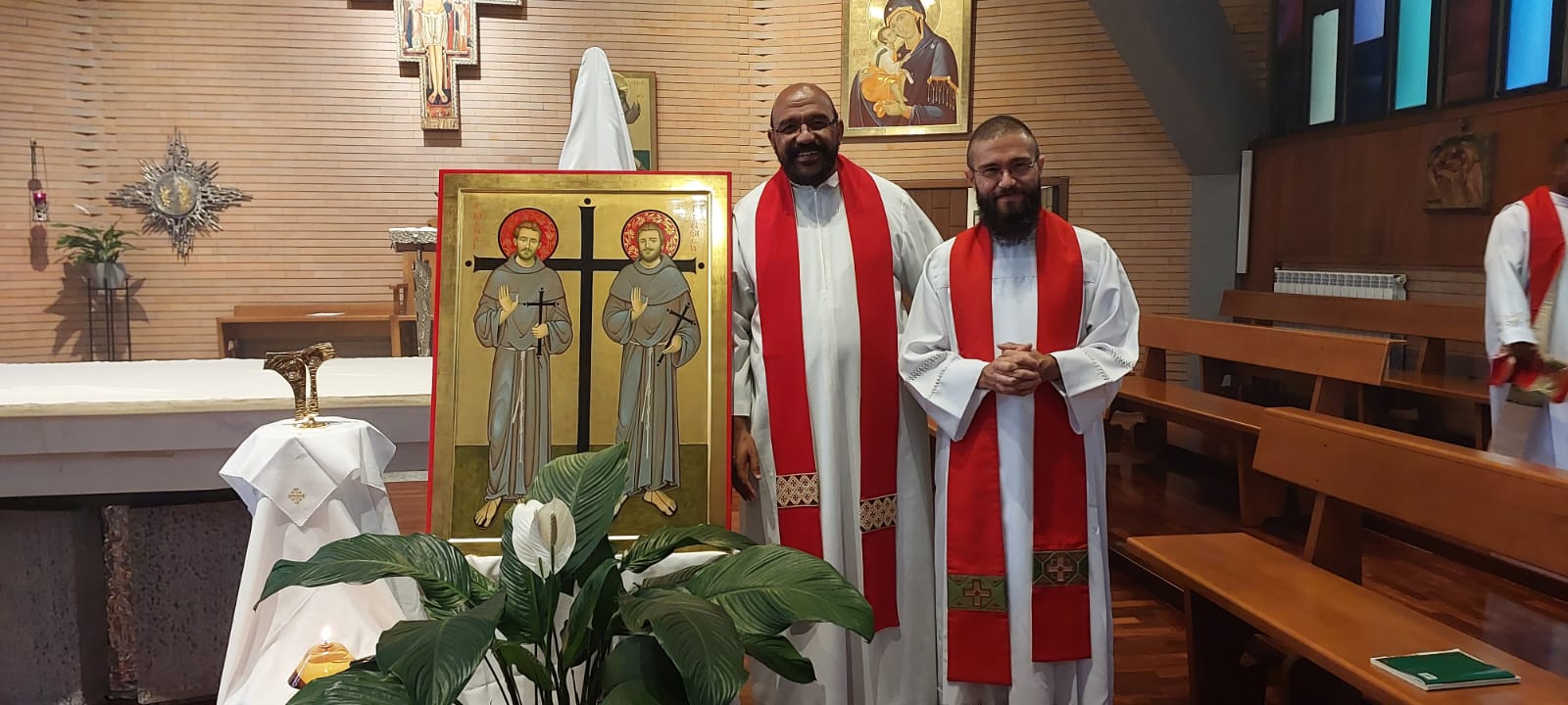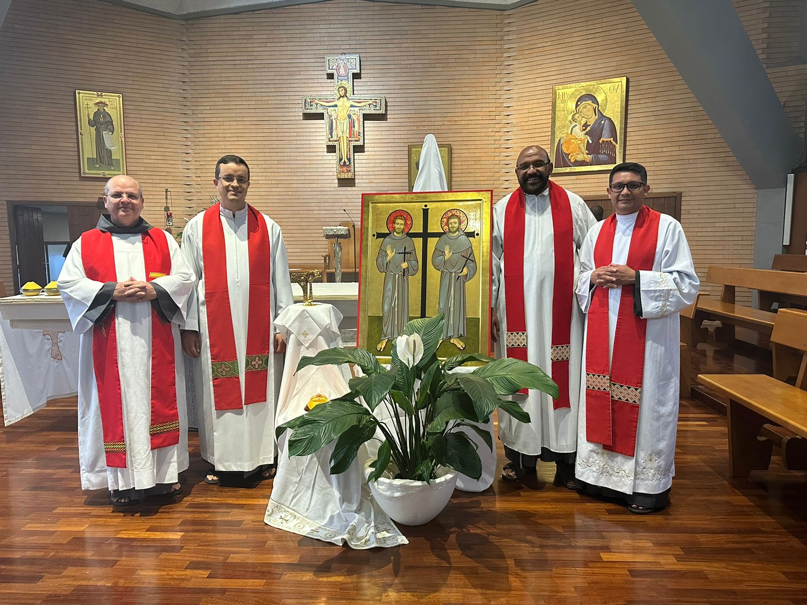 Ainda no Seraphicum, aconteceu uma breve celebração com as relíquias  dos freis mártires do Peru e o encontro de Frei Gilberto de Jesus com os frades Wagner da Silva Faustino (OFMConv) e Manoel Fernando da Silva (OFMConv), que pertencem à nossa Província e atualmente residem em Roma.