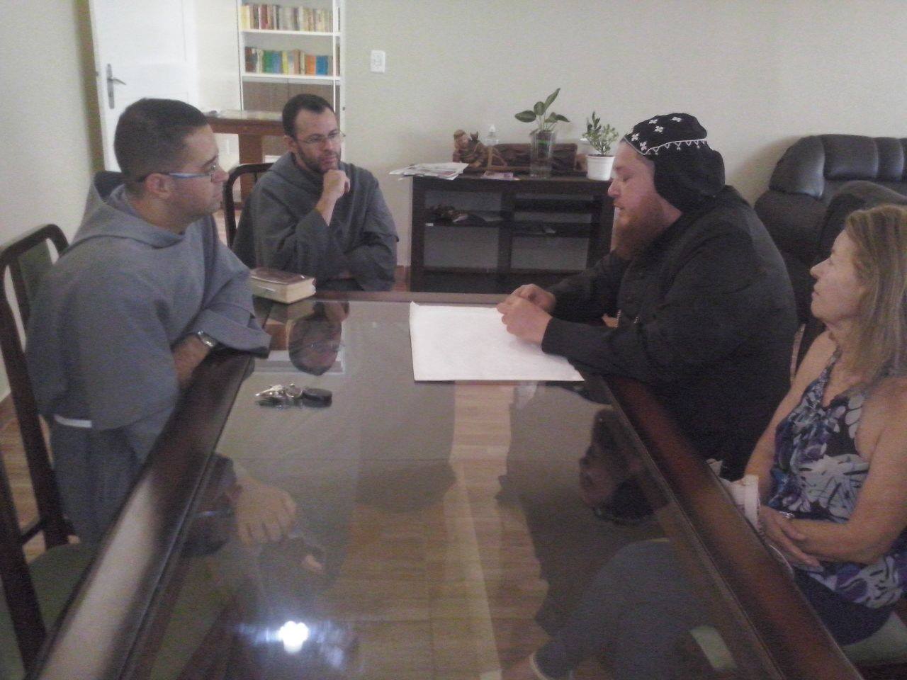 Nesta segunda-feira (20-11-2017), na Sede Nacional da Casa de Formação de Filosofia e Teologia, dos Frades Menores Conventuais em Brasília, da Cúria Provincial dos Conventuais Franciscanos: Frei Luís Felipe (Prior) e Frei Almir Rodrigues (Formador), acolhem a visita do Monge Isaac Souza, da Igreja Sirian Ortodoxa de Antioquia.
