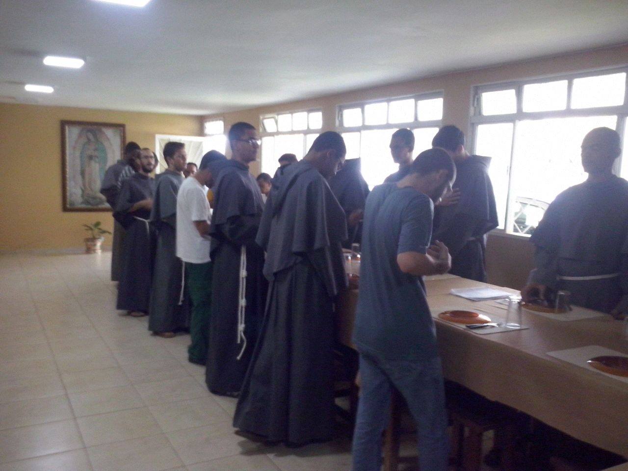 Na Capela do Convento, houve o convite a participar com a família franciscana da LITURGIA DAS HORAS (oração do meio-dia). Após a oração, se dirigiram para o refeitório, onde Frei Luís Felipe convidou o Monge Isaac a abençoar os alimentos com a oração do Pai-Nosso em Aramaico. Foram momentos de partilha e trocas de experiências. E após o almoço, se dirigiram para a sala de convivência dos frades onde o prior deu a palavra ao monge para apresentar um pouco sobre a história desta família litúrgica cristã: Igreja Sirian Ortodoxa de Antioquia. Houve trocas de presentes e na ocasião, o frei pediu, como gesto de acolhida fraterna que o monge abençoasse as lembranças ofertadas à comunidade franciscana. As orações de bênçãos foram proferidas em Aramaico.