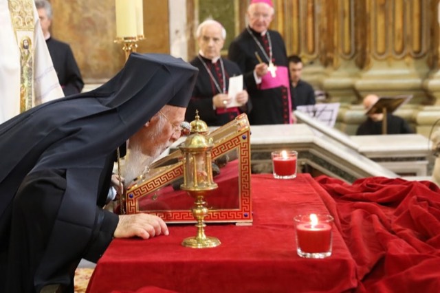 Patriarca Ecumênico de Constantinopla venera as relíquias dos apóstolos na Basílica Romana dos Santos XII Apóstolos