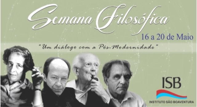 Entre os dias 16 e 20 de maio, das 11h às 12h30, acontece mais uma edição da Semana Filosófica, promovida pelo Instituto São Boaventura (IS...