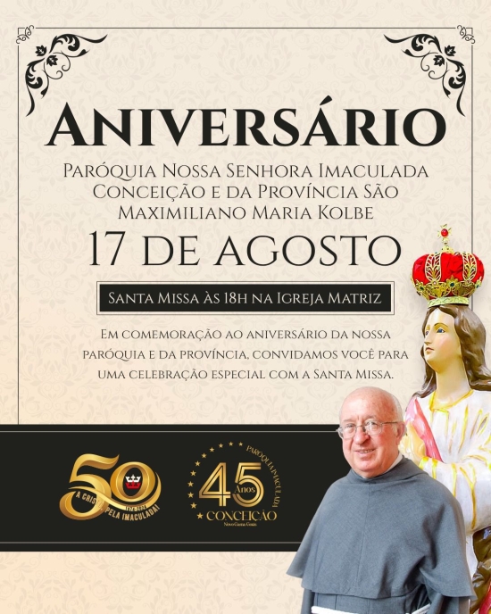 No último sábado (17), A Paróquia Imaculada Conceição de Novo Gama, na pessoa do Frei Marcos Pereira (OFMConv), celebrou os 50 anos da ...