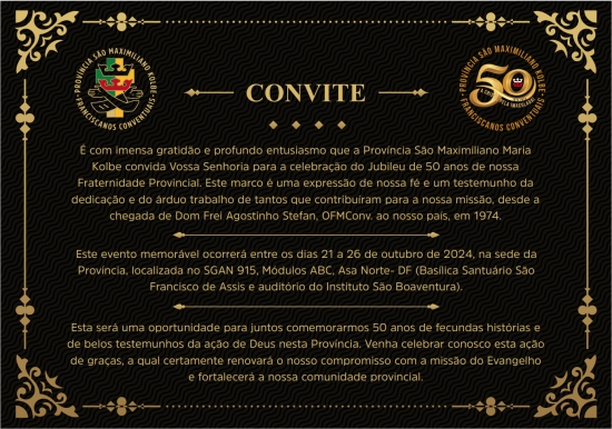 Convite: Jubileu de ouro da Província São Maximiliano Maria Kolbe